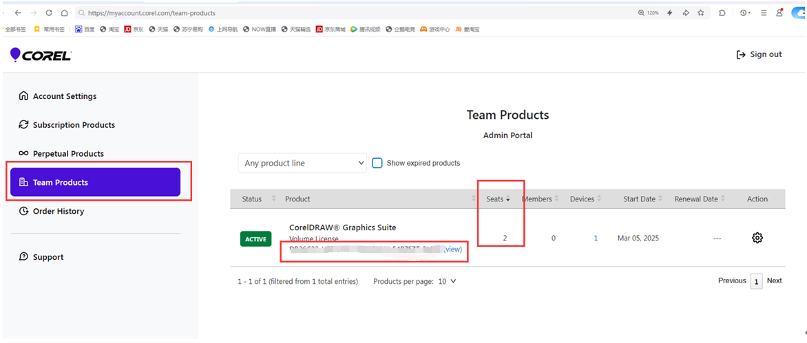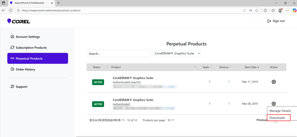 4.导入完成后可以看到许可证客户下载界面,进入下载软件安装包,订阅界面下截图打码部分为用户序列号(安装激活软件必要)。