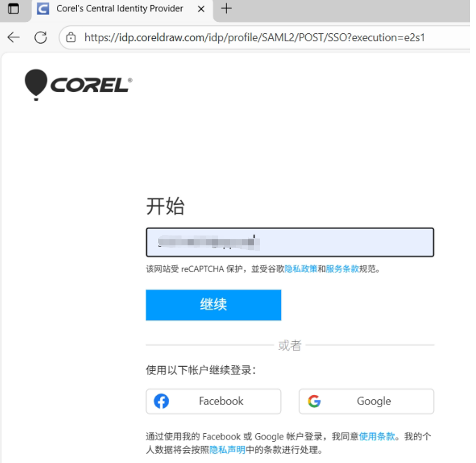 2.打开这个网址www.coreldraw.com/licensemanagement,会跳转到创建帐户和帐户登录页面。