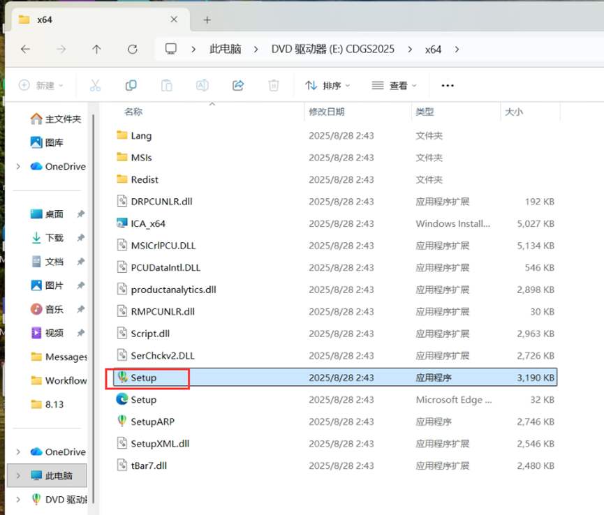 9.点击计算机-打开CDGS2025d的DVD驱动器-X64-Setup